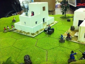 We decided to run the “capture the Governors daughter” scenario as a starter for 10. Roger picked his crew and set about his dastardly attack on the Governors mansion. After making good headway and killing off some of the outlying guards he became unstuck by his inability to hit the side of a barn from 10 paces. This coupled with a rather unbelievably staunch defence by the sergeant of the guard saw the captain and the remainder of his crew scurrying back to his pirate hideout.