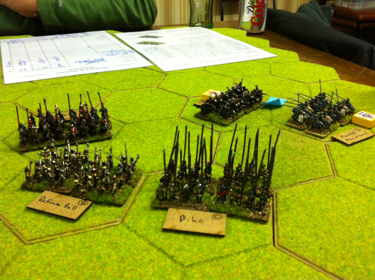 Last week saw Henry IV, under the protection of Clifford (Mike & Mike), meet the recently crowned Richard Duke of York & the Earl of Shrewsbury (Ross) on the field at Sheffield (medieval maps were apparently a little unreliable). Shrewsbury and his Men-at-Arms surrendered to the Lancastrians and soon after Richard fled the field in disgrace!