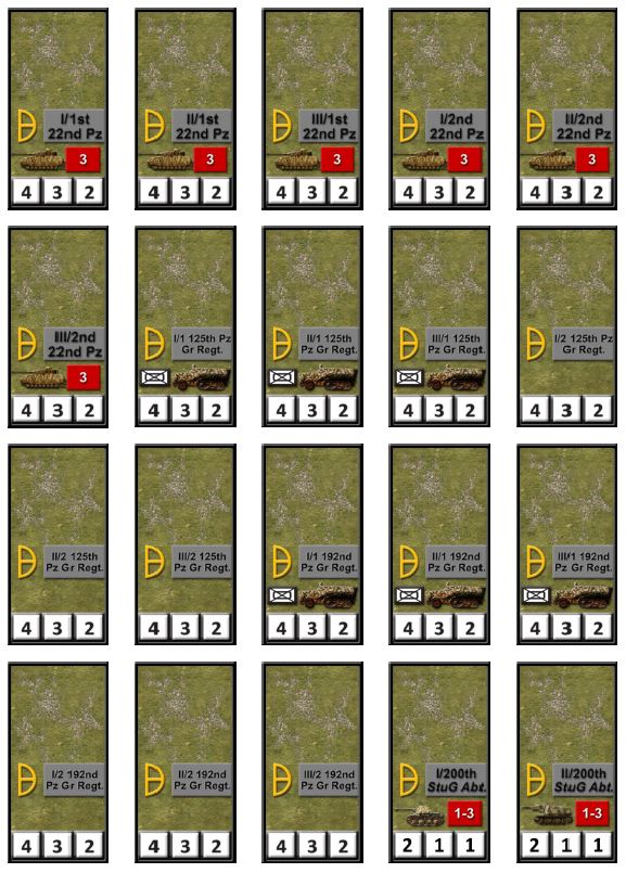 And finally the scenario pack contains all the individual unit cards for both sides (one card for each Company sized unit involved in the action). This adds up to 266 Allied and 187 German units!