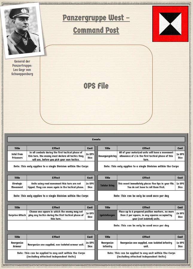 The scenario pack includes OPS files, Command Posts and Orders of Battle for the the three German and two British Corps Level Commands and all the Divisions under their command: